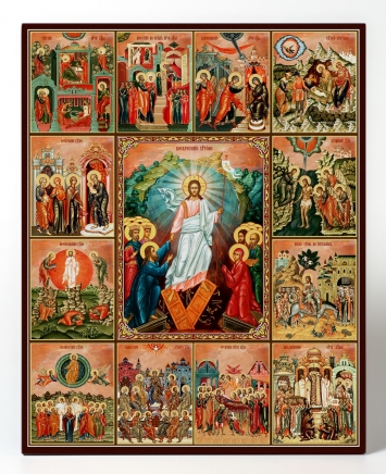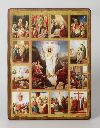 Икона на доске 40х50 объемная печать, лак Воскресение Христово с житием 3