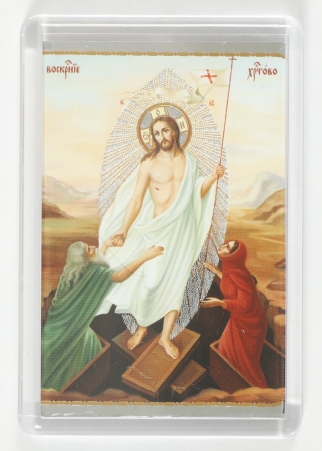 Икона в жесткой ламинации 5х8 с оборотом Воскресение Христово 1
