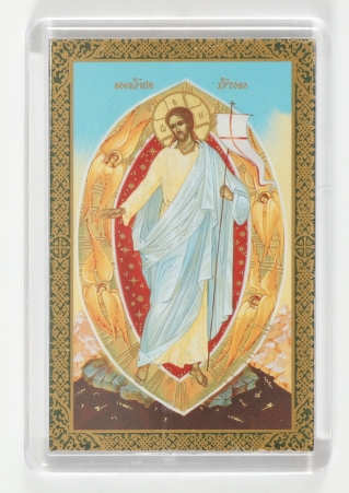 Икона в пластмассовой рамке 5х7 пластмассовая с липкой лентой Воскресение Христово 3
