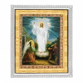 Икона в пластмассовой рамке 11х13 тиснение Воскресение Христово 59