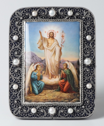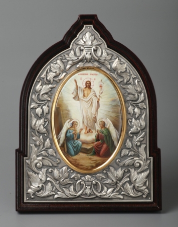 Икона именная №11 финифть, гальванопластика в деревянной рамке / золочение, серебрение / Воскресение Христово