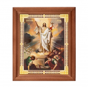 Икона в деревянной рамке №1 11х13 двойное тиснение, БЗГ Воскресение Христово 65