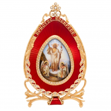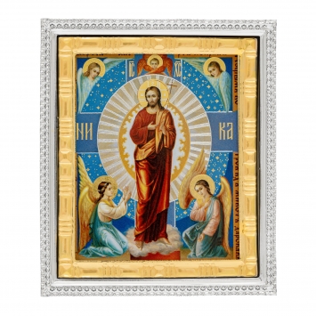 Икона настольная №33 деколь эмаль, гильяш / золочение / Воскресение Христово
