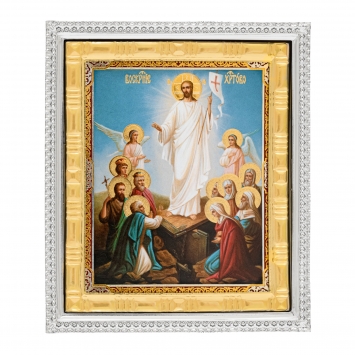 Икона в деревянной рамке №1 18х24 двойное тиснение Воскресение Христово 69