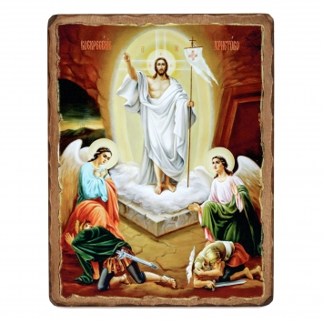 Икона на доске 30х40 объемная печать, лак №1 Воскресение Христово 2