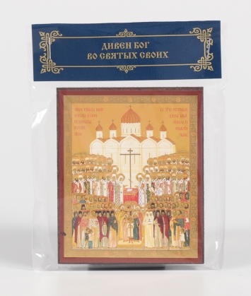 Икона на деревянном планшете 6х9 тиснение, аннотация, упаковка Собор новомучеников и исповед. Российских