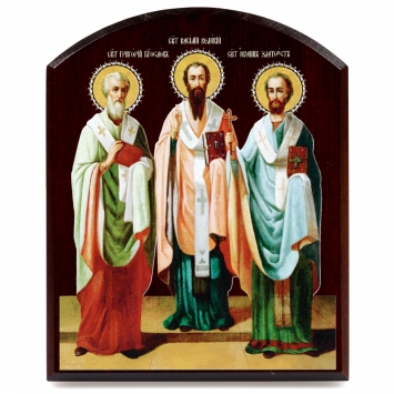 Икона на доске 33х40 объемная печать, лак Три Святителя