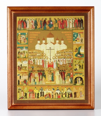 Икона в деревянной рамке №1 30х40 тиснение, упаковка Собор новомучеников и исповед. Российских с жит.