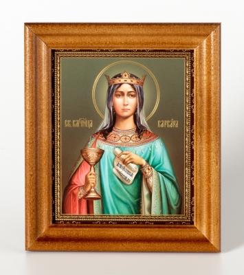 Икона в деревянной рамке 11х13 Набор с Днем Ангела, двойное тиснение Екатерина Александрийская, вмц. (2)