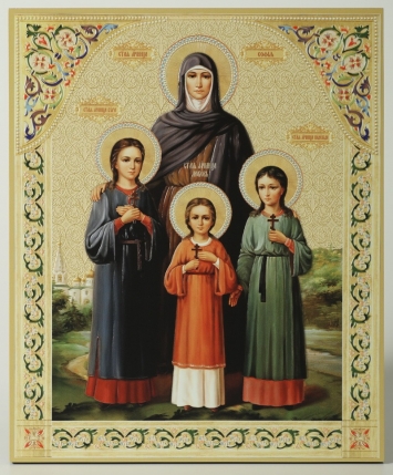 Икона на доске 10х12 объёмная печать, арочная, лак Вера.Надежда.Любовь и мать их София
