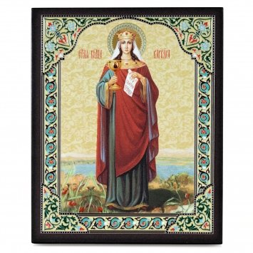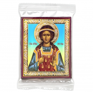 Икона на деревянном планшете 6х9 двойное тиснение, аннотация, упаковка Христина