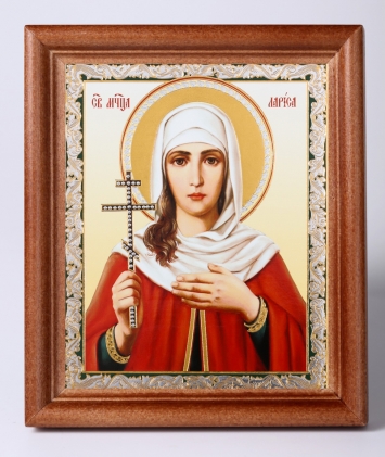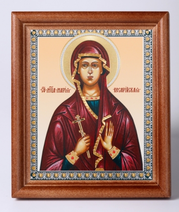 Икона в деревянной рамке 11х13 Набор с Днем Ангела, двойное тиснение Мария Кесарийская, мц. (2)