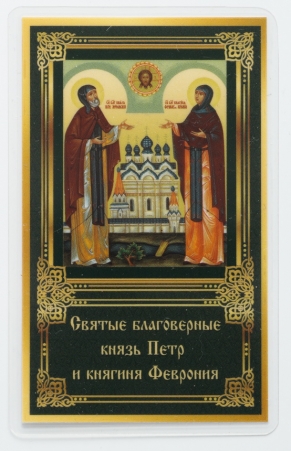 Икона в жесткой ламинации 5х8 с оборотом Петр и Феврония 3