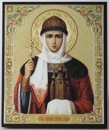 Икона на деревянном планшете 6х9 двойное тиснение, аннотация, упаковка Ольга, св. равноап. вел. княгиня (6)