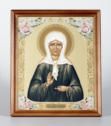 Икона в деревянной рамке №1 18х24 двойное тиснение Матрона Московская (рамка с цветами)