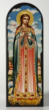 Икона на деревянном планшете 6х9 двойное тиснение, аннотация, упаковка Вера Римская, отроковица, мц. (2)