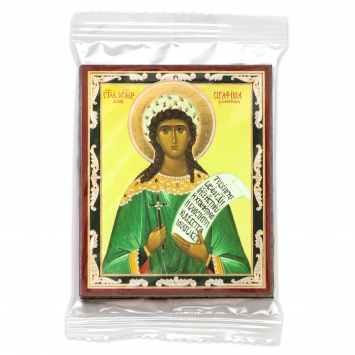 Икона на деревянном планшете 6х9 двойное тиснение, аннотация, упаковка Вера Римская, отроковица, мц. (3)