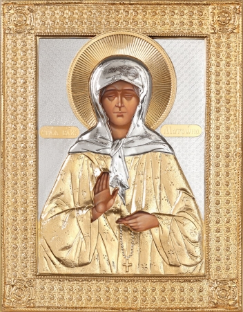 Икона настольная №137 деколь, эмаль / серебрение, золочение / Матрона