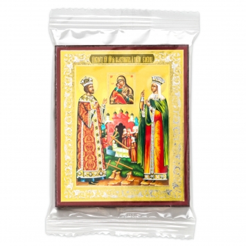 Икона на деревянном планшете 6х9 двойное тиснение, аннотация, упаковка Константин и Елена 2