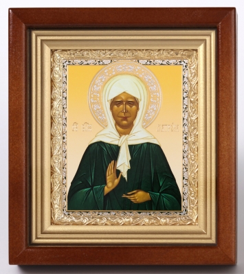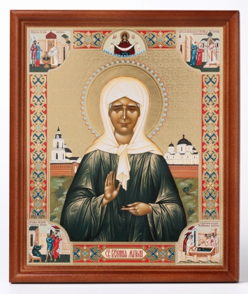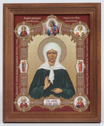 Икона в деревянной рамке 13х18 конгрев, плёнка (без стекла) Матрона Московская (с клеймами)