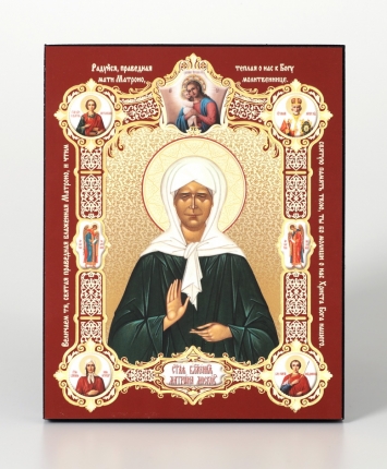 Икона на деревянном планшете 13х18 конгрев, плёнка (18мм) Матрона Московская (с клеймами)