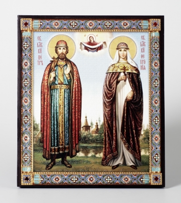 Икона на доске 22х26 объёмная печать, лак Петр и Феврония 5