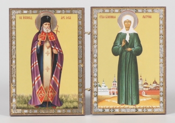 Складни деревянные 9х14 двухстворчатые, двойное тиснение Лука Войно-Ясенецкий - Матрона