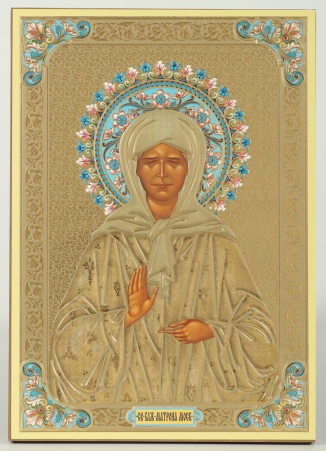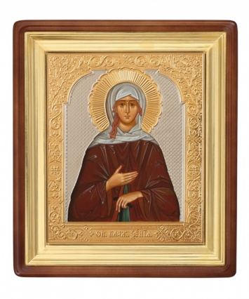 Икона на деревянном планшете 6х9 двойное тиснение, аннотация, упаковка Нонна