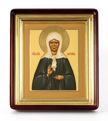 Икона живописная на доске в киоте 24х30 темпера, золоченый нимб, ковчег, киот №1 Матрона