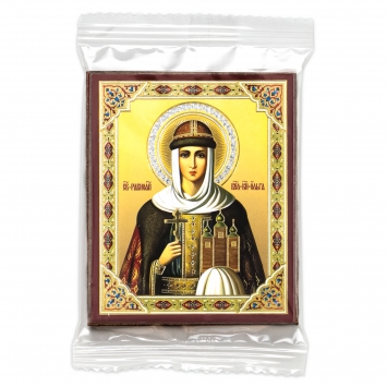 Икона на деревянном планшете 6х9 двойное тиснение, аннотация, упаковка Ольга, св. равноап. вел. княгиня (5)