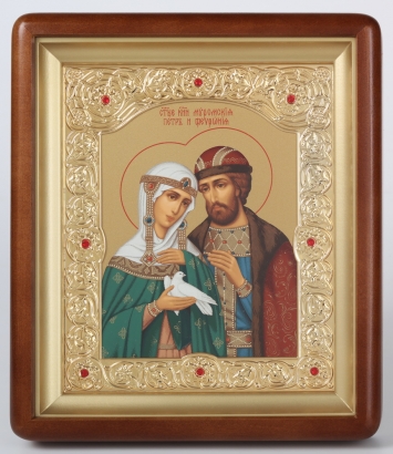 Икона в киоте 18х24 фигурный, темпера, рамка фигурная, золочёная Петр и Феврония 1