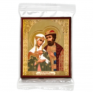 Икона на доске 9х11 объемная печать, лак Петр и Феврония 1