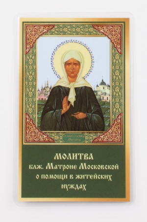 Икона в жесткой ламинации 5х8 с оборотом Матрона Московская (с венчиком)