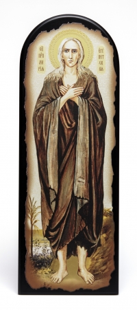 Икона на МДФ 18х50 арочная, объёмная печать, лак Мария Египетская 4