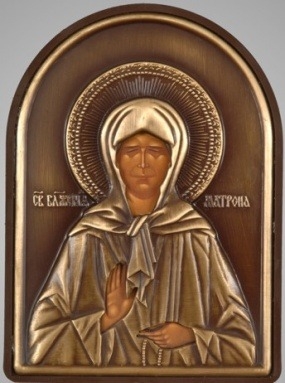 Икона в пластмассовой рамке Киот 11х13 латун. подрамник Матрона Московская (с венчиком)