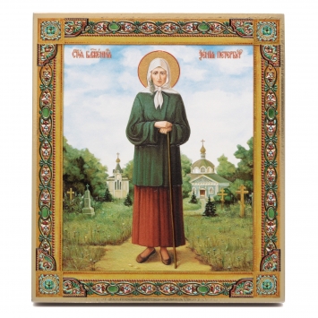 Икона на деревянном планшете 11х13 двойное тиснение, арочная Матрона Московская (ростовая)