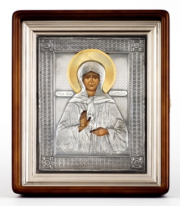 Икона живописная в киоте 24х30 масло, риза №247, черненое серебрение, киот №1 Матрона