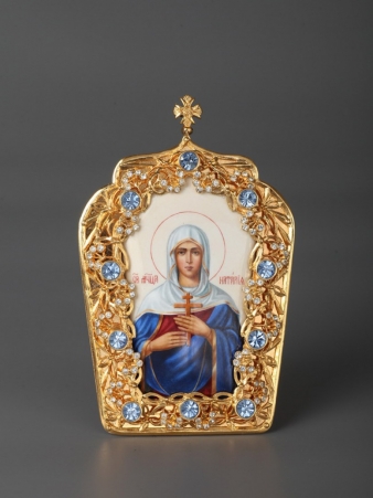 Икона настольная №12 финифть / золочение / Наталия