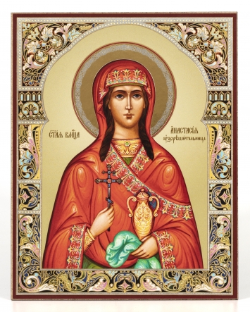 Икона на деревянном планшете 11х13 двойное тиснение Анастасия Узорешительница (поясная) №4