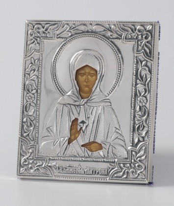 Икона штампованная 6*7 / темпера / серебро Матрона (УИН)