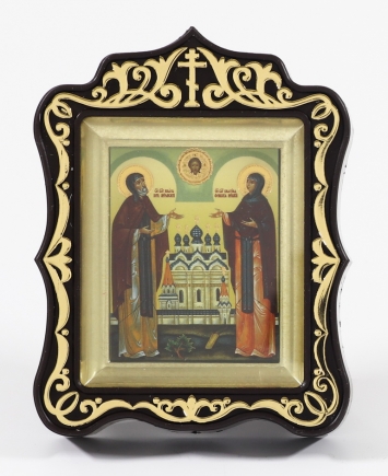 Икона в пластмассовой рамке 6х7 металлизированная Петр и Феврония 2