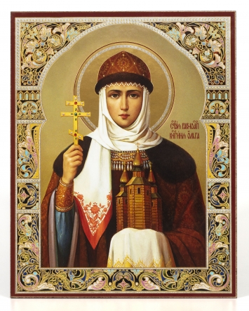 Икона на деревянном планшете 11х13 двойное тиснение Ольга, св. равноап. вел. княгиня (9)