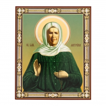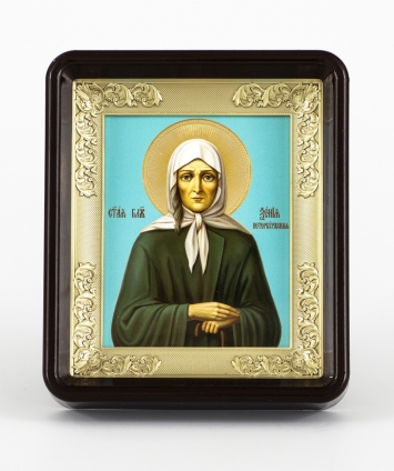 Икона в пластмассовой рамке 6х7 металлизированная риза Матрона Московская (с венчиком)