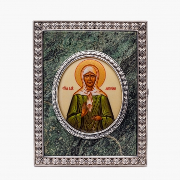 Икона настольная №117 деколь, камень / серебрение / Матрона