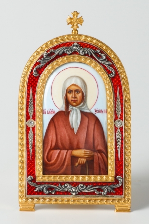 Икона настольная №3 серебро финифть, эмаль / золочение / Ксения Петербургская (УИН)