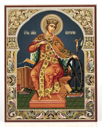 Икона на деревянном планшете 11х13 двойное тиснение Екатерина Александрийская, вмц. (4)