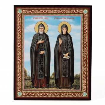 Икона на доске 22х26 объёмная печать, лак Петр и Феврония 9