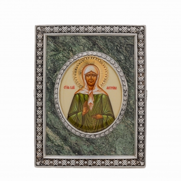 Икона настольная №117 деколь, камень / золочение, серебрение / Матрона