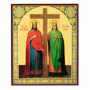 Икона на доске 33х40 объемная печать, лак Константин и Елена