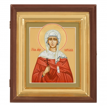Икона живописная на доске в киоте 18х24 темпера, золоченый нимб, ковчег, киот №1 Наталия, 05628